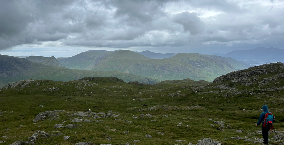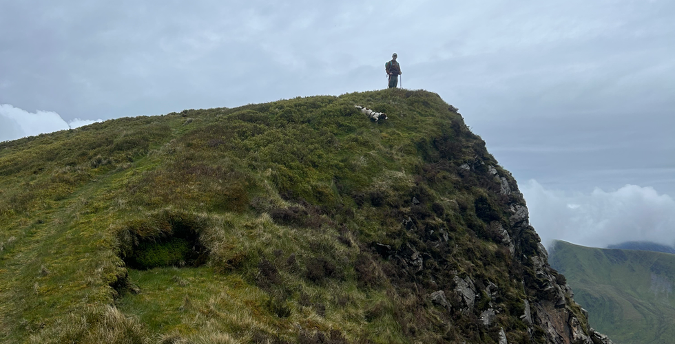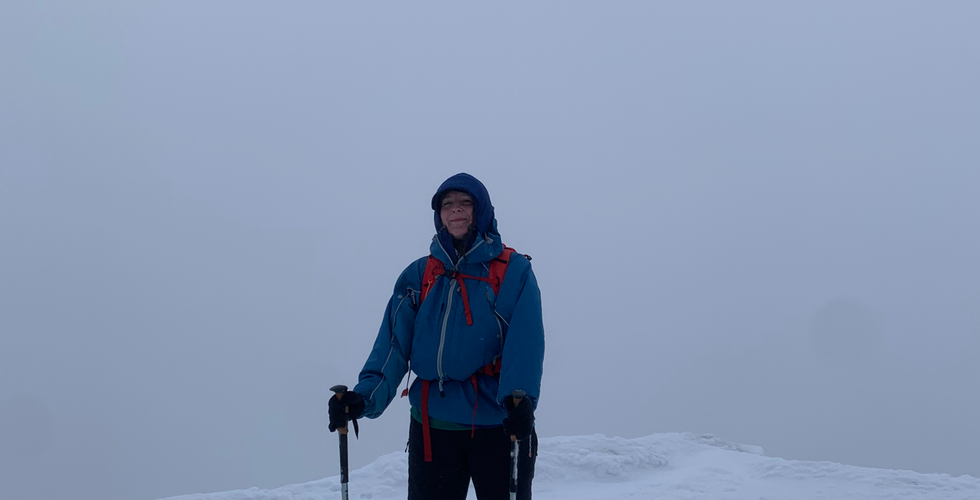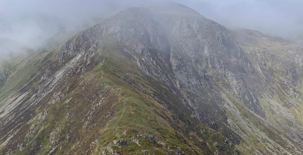 Walking up in the drizzle, we eventually made it close to the top; the clouds were low, visibility was poor, and we were greeted with a surprise scramble. We eventually made it to the top, but with wind gusts of 60mph hitting us. I literally crawled to the trig point :’). We decided to carry on our route, but follow the path leading down and not onwards. The weather was not the one for a long day in the mountains. Our way down was a barrage of paths, and paths that were now rivers. It was a highly eventful end to a lovely weekend.