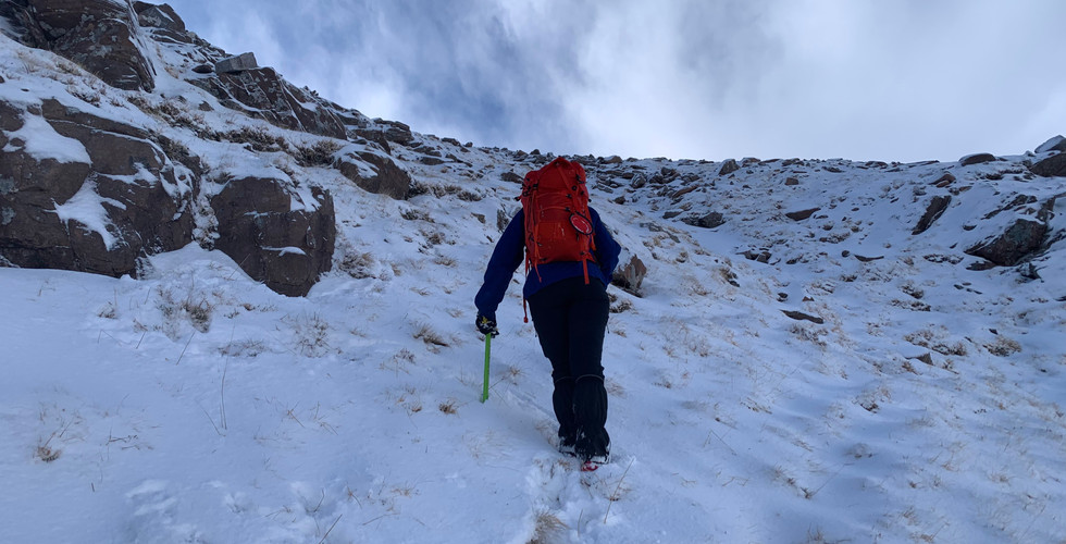 Okay, I know I said this earlier, but one of the best scrambles I have ever done. This was my first winter condition scramble, and oh my, did I have so much fun. It was terrifying, but so fulfilling. We didn’t need crampons as the snow was soft rather than icy. There were parts where I thought, why am I doing this, but nothing beats that feeling of overcoming the challenge in front of you. I think also when Jess is managing it fine, it kinda makes you get on with it (haha!)