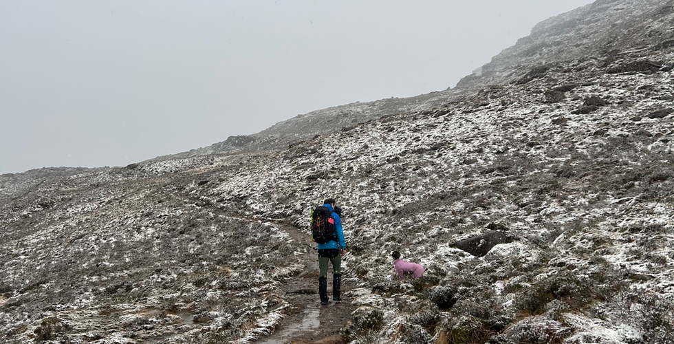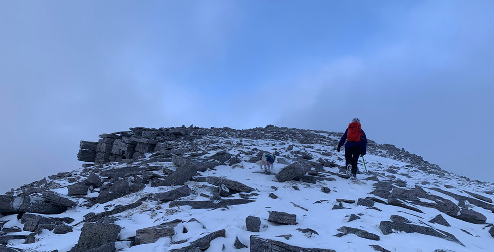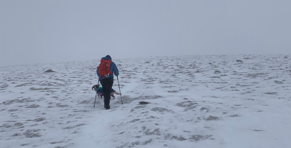 This walk ended up being one of the windiest exposed routes I had done to date. We slowly came up a tame path, which started to get rather Icy. Emergency Shelter up, we got out the crampons and got ourselves prepared. Multiple whiteouts and peaks later, we find ourselves finally heading closer to the car where I took one of the riskiest wild wee’s. This route was an absolute treat and would be so fun to do again in better weather, as the views we did get were insane!