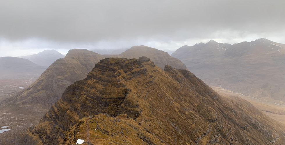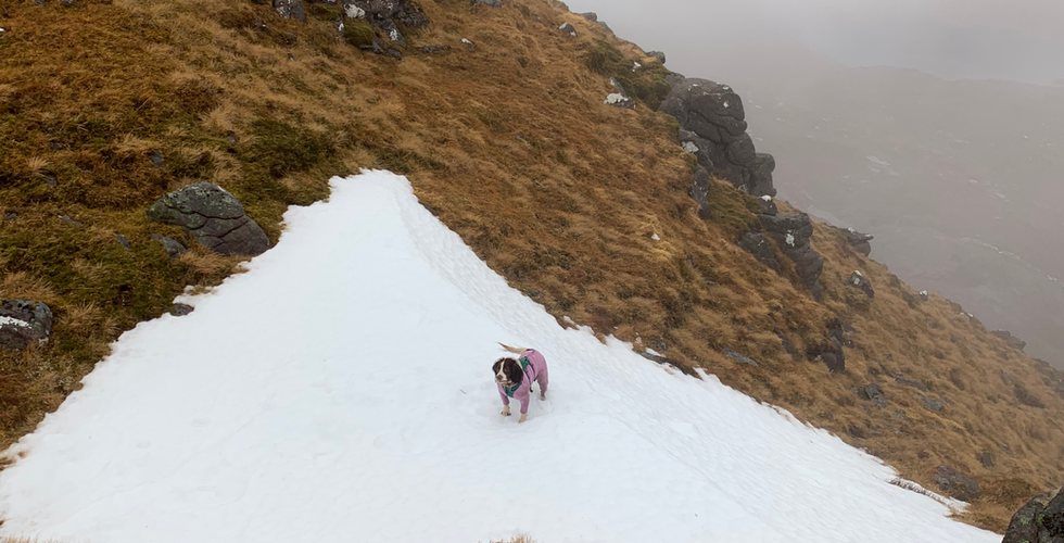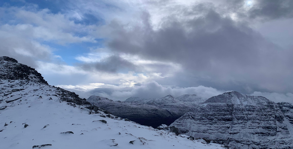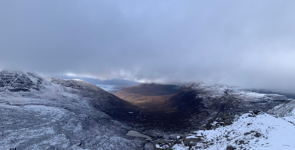 Hands down, one of the best scrambles I have done, even to date. Again with Dan and Jess, we bagged 6 peaks, and I was even shown how to Ice Axe Arrest in some of the snowy patches. However, Jess demanded to play in them instead. The weather was dry for most of the morning, but the rain did come in, making for a swift exit, although clearing towards the bottom, giving us some of the most insane views of Torridon.